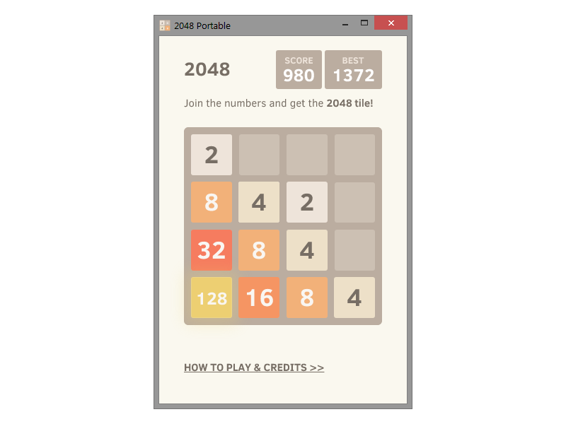 2048 is a tile-based puzzle game. You combine matching tiles to create larger numbered tiles and higher scores before you run out of space. Can you get the 2048 tile? And when you're done with 2048, why not let the AI play, or try 2048 Numberwang, 2048 tetris, 2048 with undo, or Flappy 2048? They're all included!
