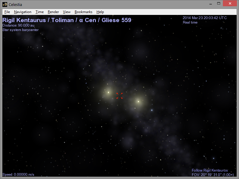 Unlike most planetarium software, Celestia doesn't confine you to the surface of the Earth. You can travel throughout the solar system, to any of over 100,000 stars, or even beyond the galaxy. All movement in Celestia is seamless; the exponential zoom feature lets you explore space across a huge range of scales, from galaxy clusters down to spacecraft only a few meters across. A 'point-and-goto' interface makes it simple to navigate through the universe to the object you want to visit. Celestia is expandable. Celestia comes with a large catalog of stars, galaxies, planets, moons, asteroids, comets, and spacecraft. If that's not enough, you can download dozens of easy to install add-ons with more objects.