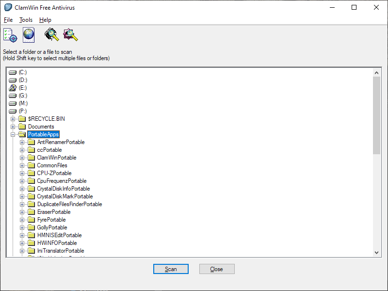 ClamWin Portable combines the latest version of ClamWin from the publisher combined with updated ClamAV Windows native files. A console window will appear during scanning. To cancel, close the console window.