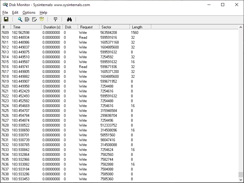 DiskMon is an application that logs and displays all hard disk activity on a Windows system. You can also minimize DiskMon to your system tray where it acts as a disk light, presenting a green icon when there is disk-read activity and a red icon when there is disk-write activity.