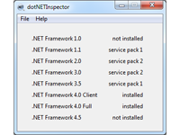 doTNETInspector shows you which version of the .NET framework are installed on the current PC and which service packs of each version are installed. This can be useful for determining which versions you need to add for a given piece of software and to determine if a given portable .NET app will run.