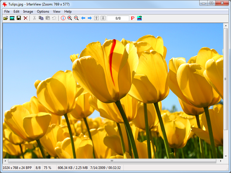 IrfanView is a fast, compact and innovative freeware (for non-commercial use) graphic viewer for Windows with support for numerous file formats (supported formats), multilingual support, paint tools, skins, slideshow, EXIF/IPTC/Comment text, Adobe Photoshop Filters, directory viewing, batch conversion (with image processing), multipage TIF editing, file search, multimedia playing, printing, embedded color profiles in JPG/TIF, color depth changes, scanning support, basic editing, IPTC editing, effects (Sharpen, Blur, Adobe 8BF, Filter Factory, Filters Unlimited, etc.), screen capture, icon extraction (EXE/DLL/ICLs), lossless JPG rotation, Unicode, hotkeys, and more. All standard plugins and translations are included with this package.