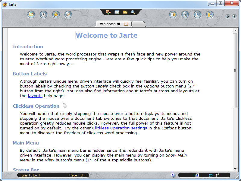 You expect a word processor to be able to handle Word documents, font and paragraph formatting, spell checking, print preview, and more. While Jarte performs all the standard functions well, the most important aspect of Jarte is the numerous small details that make it an efficient and enjoyable tool for creating documents. Small details like: