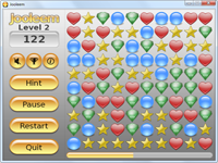 Jooleem Portable is an easy to learn puzzle game packaged as a portable app. You'll spend hours playing this simply addictive game. It's easy to learn because there's only one rule. Click on four marbles of the same color to form a rectangle. The longer you play the harder it gets. Custom marbles © Oxygen, Everaldo and PortableApps.com with improved differentiation that also work for those with color blindness.