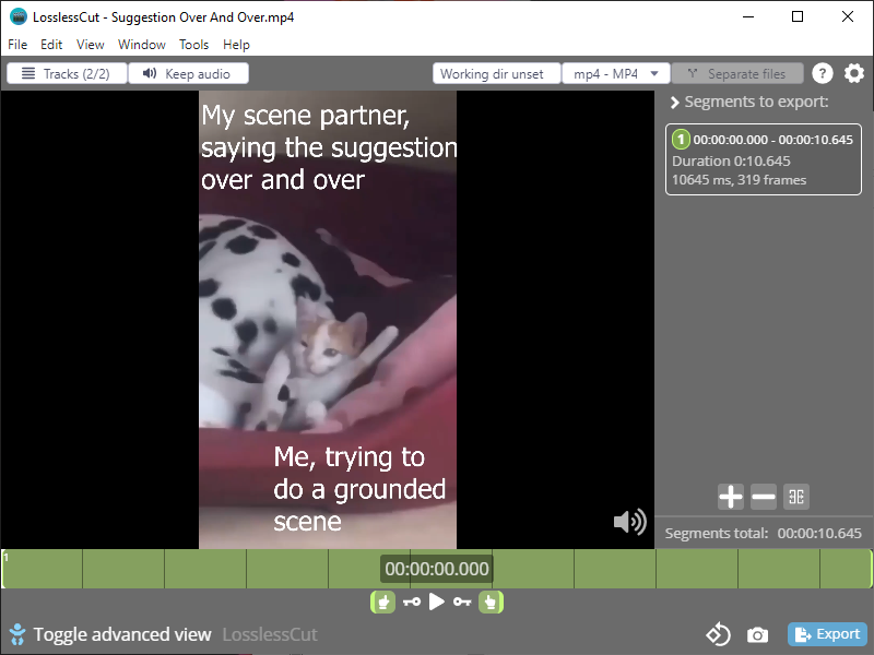 LosslessCut aims to be the ultimate cross platform FFmpeg GUI for extremely fast and lossless operations on video, audio, subtitle and other related media files. The main feature is lossless trimming and cutting of video and audio files, which is great for saving space by rough-cutting your large video files taken from a video camera, GoPro, drone, etc. It lets you quickly extract the good parts from your videos and discard many gigabytes of data without doing a slow re-encode and thereby losing quality. Or you can add a music or subtitle track to your video without needing to encode. Everything is extremely fast because it does an almost direct data copy, fueled by the awesome FFmpeg which does all the grunt work.