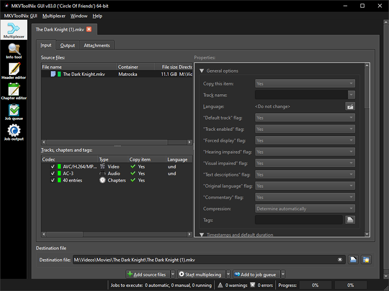 MKVToolNix is a set of tools to create, alter and inspect Matroska files under Linux, other Unices and Windows. With these tools one can get information about (via mkvinfo) Matroska files, extract tracks/data from (via mkvextract) Matroska files and create (via mkvmerge) Matroska files from other media files. Matroska is a new multimedia file format aiming to become THE new container format for the future.