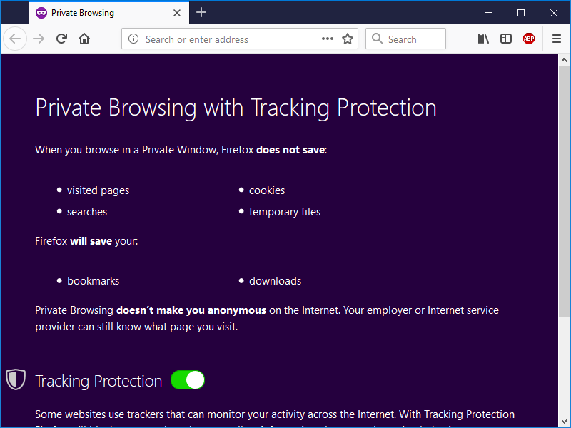 Private Browsing by PortableApps.com is an app that works with Mozilla Firefox, Portable Edition. It allows you to launch Firefox with a specialized profile with advanced privacy measures included. This profile has persistent cookies, history, download history and other privacy features off. AdBlock Plus is included with a subscription to the EasyPrivacy list to block tracking scripts and sites as well as the standard ad-blocking list. Local plugins and extensions are ignored and will not be used by this custom profile. A custom icon for the task bar is included so you can easily distinguish your private profile from your normal one.