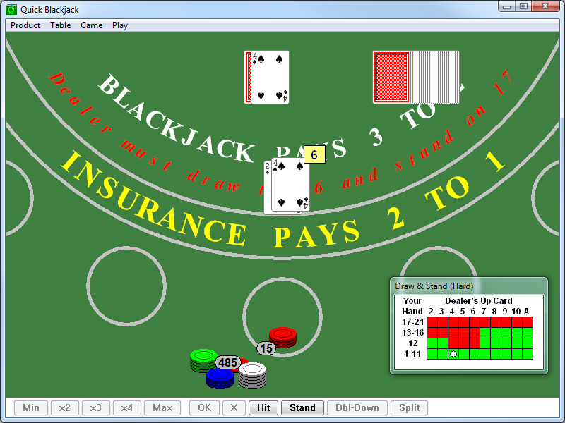 Practice your Blackjack skills and sharpen your strategy with this fun, simple and easy-to-use game of Blackjack for Microsoft Windows. You play against the house. Keep track of your winnings with on-screen piles of chips that look and act like the real thing. Learn basic betting strategy with pop-up cheat-sheets. See the table below for a complete list of features.