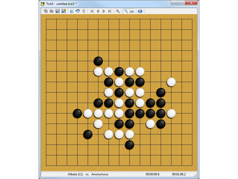 Tick5 is an implementation of the board game known as gomoku, omok, piskvorky or wuziqi. With a 15x15 board, Tick5 is an extended 5-in-a-row version of Tic-Tac-Toe. Your precious game won't be lost, it can be saved into a file instead. You can save a game and, later on, either resume it or review it. The size of the saved game is tiny (less than 1KB), you even can play the game with your buddies via e-mail by sending the file back and forth. If you are new to this game, you can use Tick5 as a learning tool. You can get a hint from the built-in AI player if you cannot figure out what's next move, undo moves if you find you made a mistake, and review the game by stepping through the all moves and analyze why you win or lose.