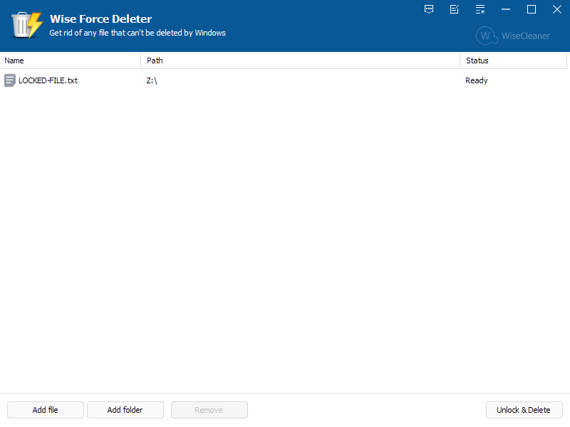 Wise Force Deleter Portable is a utility to help delete locked folders and files. Helps you solve issues like "File In Use" and "File Access Denied" when deleting files and folders. Unlock and delete files and folders easily and securely.