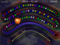 Zaz is a game where the player has to get rid of incoming balls by arranging them in triplets. The idea of the game is loosely based on games like Luxor, Zuma and Puzzle Bobble. The twists that make Zaz stand out from other games of this type are that the balls have to be picked from the path (insted of being randomly assigned for the player) and that the player's "vehicle" is also attached to a path which is different from level to level.