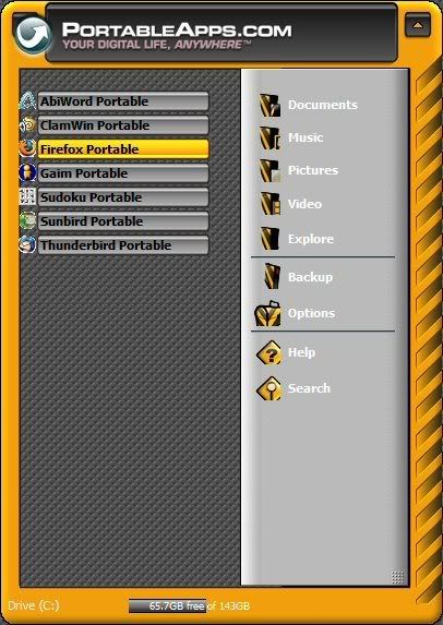 I just discovered PortableApps and decided to make a Heavy Equipment theme for it. I am mostly done with what I can do currently, but am hoping that more can be added to the skinning engine of PortableApps before I release the theme. Like making the menu items multi-state buttons, etc...