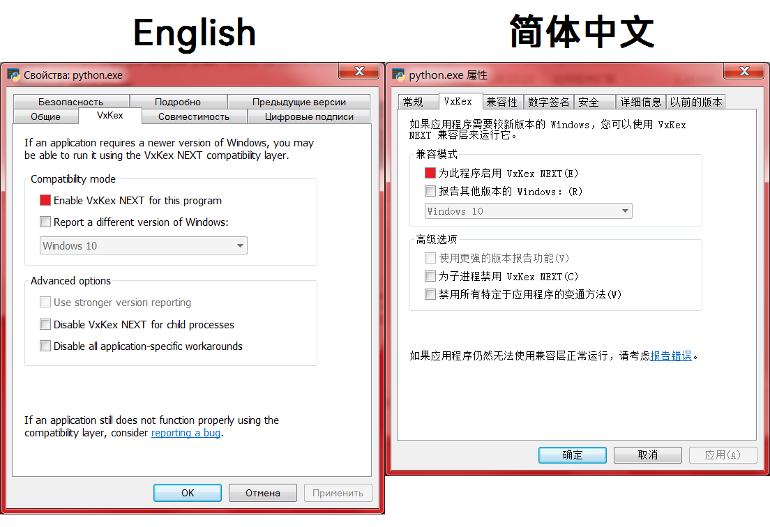 See details inside '00- Documentation' --> and carefully read the file 'VxKex Registry Keys.docx'. and inside instruction of this repository: https://github.com/xuzhongxing/VxKex-NEXT -