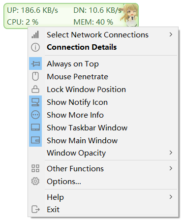 #2 Right-Click Menu: https://github.com/zhongyang219/TrafficMonitor/raw/master/Screenshots/en...