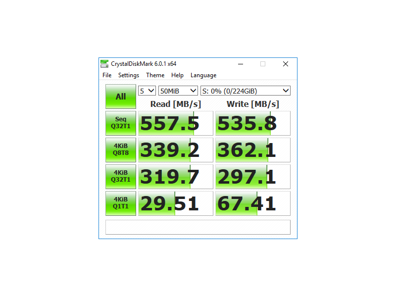 CrystalDiskMark can measure sequential reads/writes speed, measure random 512KB, 4KB, 4KB (Queue Depth=32) reads/writes speed, has support for different types of test data (Random, 0Fill, 1Fill), includes basic theme support and has multilingual support (though it will not yet remember your language selection between runs).