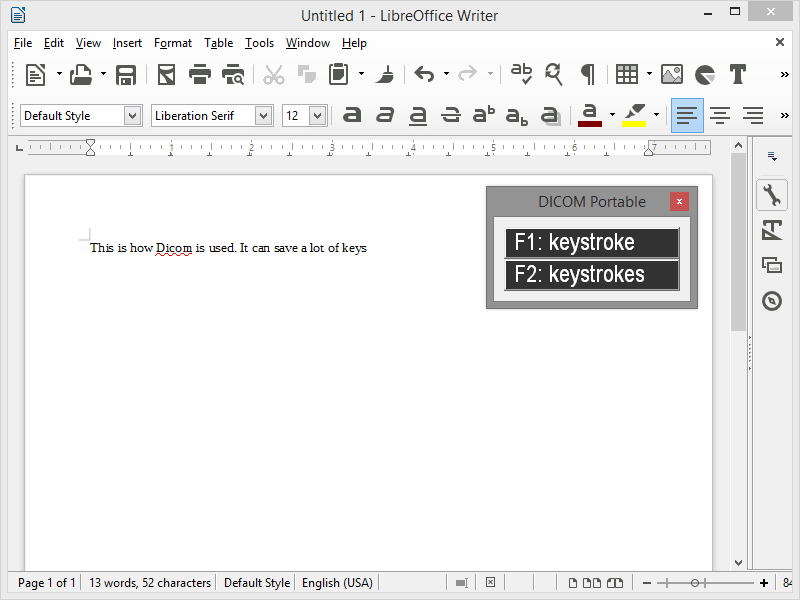 Dicom Portable allows you to complete words in fewer keystrokes making it a valuable tool for users with motor and coordination impairments. It includes English and French dictionaries of words and you can add your own words using the configuration icon in the system tray. After entering a few characters, a list of word options pops up with the ability to hit F1 to F10 to select the appropriate word. The app can also be used for your own dictionaries for programming and other subjects. The app will appear in French or English to match the PortableApps.com Platform. When used alone, you can switch languages by editing the Data\settings\DicomPortableSettings.ini file and setting Language= to English or French. The app's English translation is contributed by PortableApps.com.
