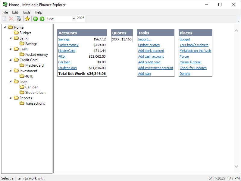 Metalogic Finance Explorer is a personal finance, budget software compatible with Money and Quicken downloads. It features: