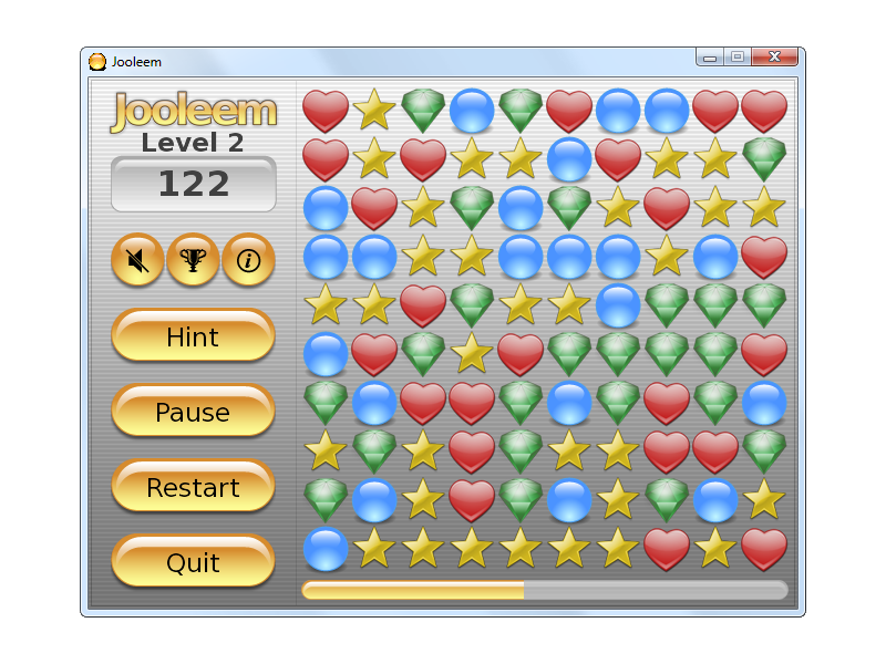 Jooleem Portable is an easy to learn puzzle game packaged as a portable app. You'll spend hours playing this simply addictive game. It's easy to learn because there's only one rule. Click on four marbles of the same color to form a rectangle. The longer you play the harder it gets. Custom marbles © Oxygen, Everaldo and PortableApps.com with improved differentiation that also work for those with color blindness.