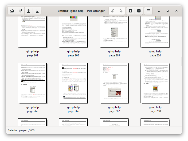 PDF Arranger is a small python-gtk application, which helps the user to merge or split PDF documents and rotate, crop and rearrange their pages using an interactive and intuitive graphical interface. It is a front end for pikepdf.