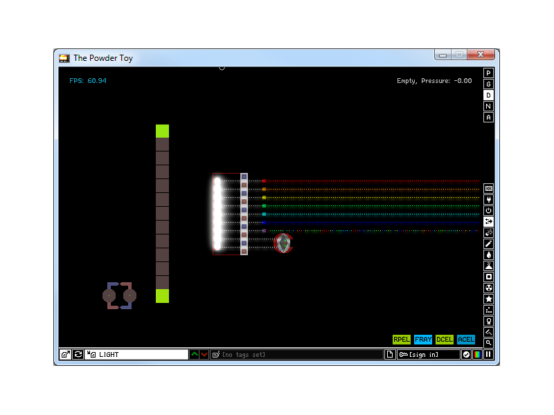 The Powder Toy is a free physics sandbox game, which simulates air pressure and velocity, heat, gravity and a countless number of interactions between different substances! The game provides you with various building materials, liquids, gases and electronic components which can be used to construct complex machines, guns, bombs, realistic terrains and almost anything else. You can then mine them and watch cool explosions, add intricate wirings, play with little stickmen or operate your machine. You can browse and play thousands of different saves made by the community or upload your own – we welcome your creations!