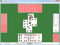 Sharpen your skills at the Bridge table with this fun, free and easy-to-use game of Contract Bridge. You play for the South and North hands (We) while the computer plays for East and West (They). Uses the Standard American Bidding system with Stayman and Blackwood conventions. Display's your hand valuation using a combination of High-Card points (HCP) and Length points. Replay the last hand or Redeal the current hand. Includes a pop-up score sheet that keeps score for you.