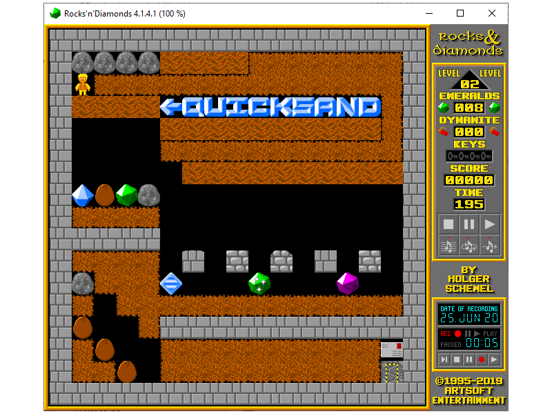 Rocks'n'Diamonds is a fast-paced gem collection game in the tradition of Boulder Dash, Emerald Mine, Supaplex and Sokoban.