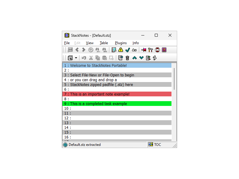 Use StackNotes pages to record notes and lists of things to do... The first line of each StackNotes page is used as the Table of Contents entry. Use the Edit menu to Cut, Copy and Paste notes and lists. StackNotes pages are automatically saved whenever you browse through your notes. Each StackNotes page can contain up to 32K of ASCII text. Features: Table of Contents, Drag & Drop, Priorities, Find & Replace, Built-in Help, Auto Saving, Desktop Locations, Taskbar Tray