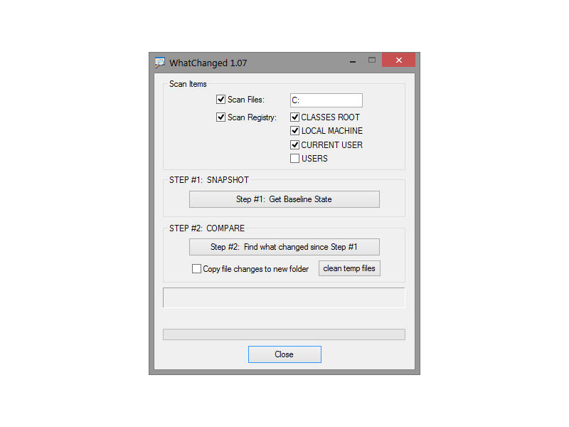 WhatChanged is a system utility that scans for modified files and registry entries. It is useful for checking program installations. There are two steps for using WhatChanged: 1) First, take a snapshot to get the current state of the computer; 2) Second, run it again to check the differences since the previous snapshot. WhatChanged uses the 'brute force method' to check files and the registry.